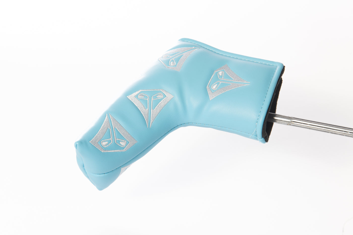 Beautiful sky blue blade headcover. This headcover is handmade with premium leather and adorned with a magnetic snap to fit snug on your putter head.